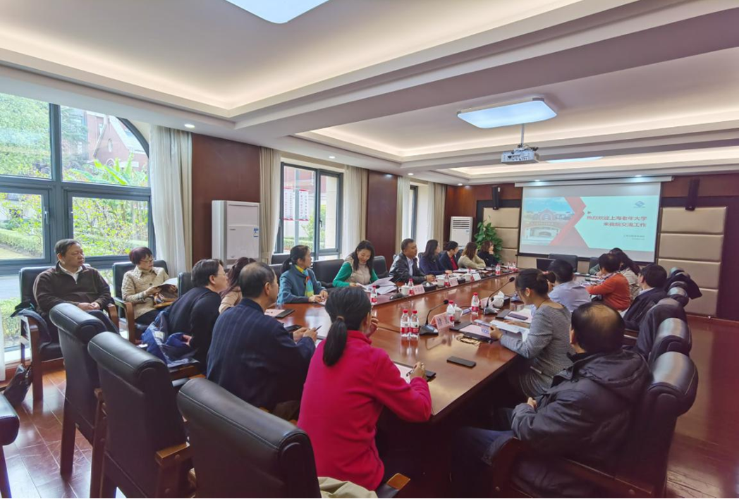 11月26日,上海市老年大学一行18人在党支部书记、副校长张兴和副校长马宪国的带领下来我院交流市级精神文明单位创建工作。院党委书记、副院长刘玉祥出席座谈会。